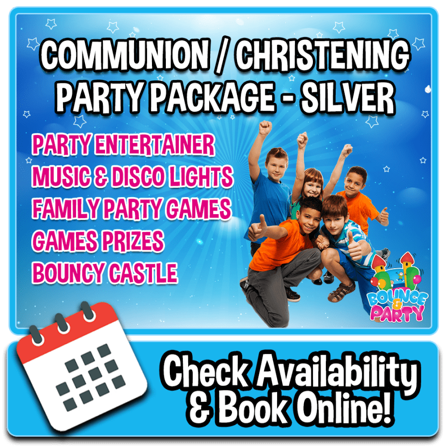 Looking for the perfect party solution in Glasgow, Govan, Carntyne, Riddrie, Easterhouse, Paisley, Maryhill, Coatbridge, Airdie, Knightswood, Kirkintilloch, Anniesland, Bearsden, South Side, Rutherglen, Cambuslang, Milngavie, Bishopbriggs, Springburn, East Kilbride, Hamilton, Motherwell, Bellshill, Pollok, Penilee, & surrounding areas? Our Communion Party Package - Bronze is available to bring joy and laughter to your event.