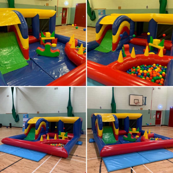 This multi colour, unisex toddler soft play arena with bouncy castle, Slide and ball pool is perfect for toddler parties in and around Glasgow and Lanarkshire. Availability is limited as bookings are often taken months in advance, so we advise you to call and book as soon as you know the date required.